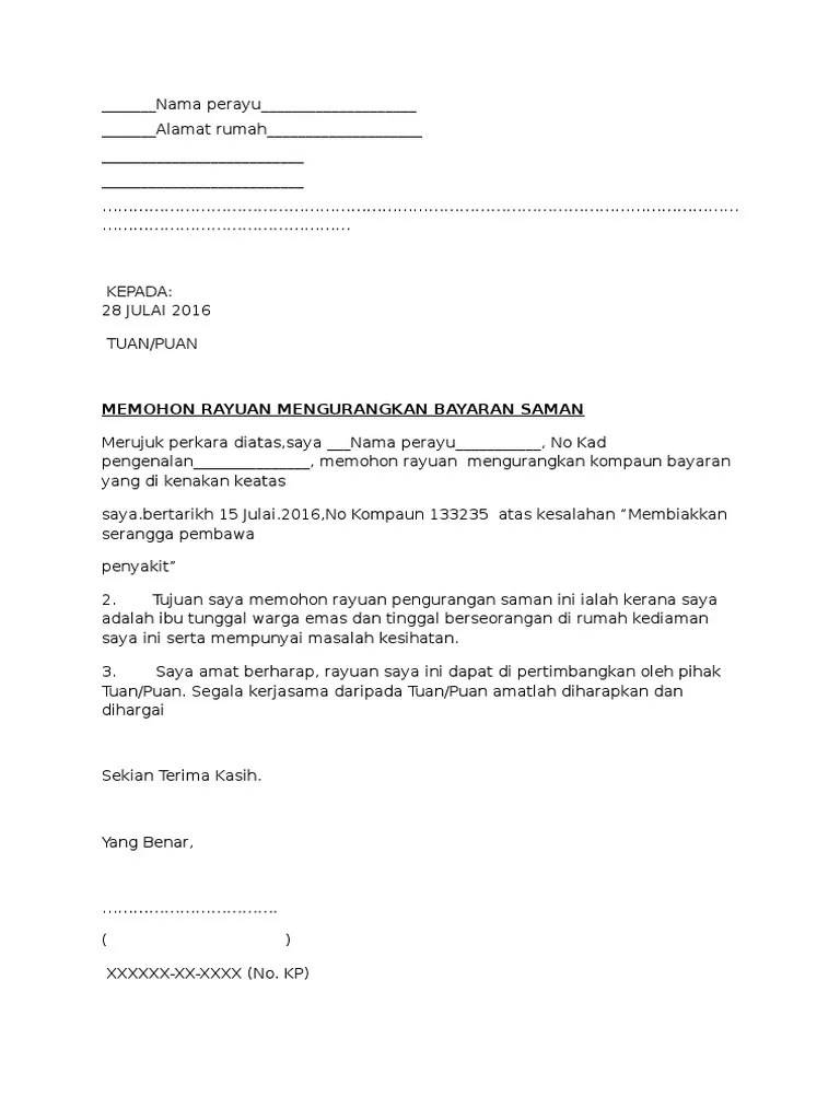Download contoh surat rayuan kompaun kesalahan pkp 2020/2021. Surat rasmi rayuan, surat rasmi, surat rasmi pkp, surat rasmi spm, surat rasmi. Surat rasmi rayuan mengurangkan kompaun. Saya seperti nama diatas ingin memohon jasa baik tuan agar dapat mengurangkan . 3 kategori kompaun pkp 2021 kadar pengurangan. Rayuan dikurangkan kadar kompaun kesalahan saman trafik. Surat rayuan pengurangan kompaun kastam selangor w. 3 kategori kompaun pkp 2021 kadar . Contoh surat rayuan pengurangan kompaun lhdn viral blog q. Contoh surat rasmi rayuan, contoh surat rayuan rasmi kerajaan, surat rasmi rayuan, surat rasmi, surat rasmi pkp, surat rasmi spm, . 3 kategori kompaun pkp 2021 kadar pengurangan .